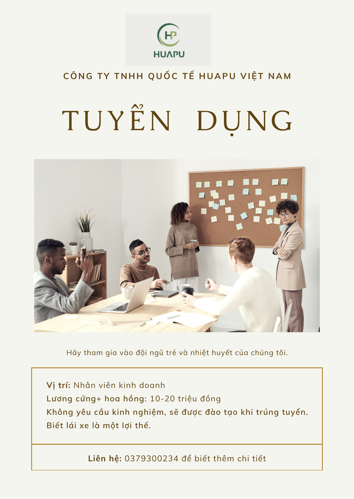 quốc tế huapu việt nam là công ty Công ty đa quốc gia đang hoạt động lĩnh vực Nhà hàng, Khách sạn tại Hà Nội. Hiện tại chúng tôi đang cần tuyển vị trị trí "Nhân viên kinh doanh và quản lý thị trường" với các kỹ năng như Kỹ Năng Bán Hàng, Kỹ Năng Kinh Doanh. Bạn sẽ được hưởng các chế độ phúc lợi như Bảo mật lương, Chế độ bảo hiểm khi làm việc tại quốc tế huapu việt nam.